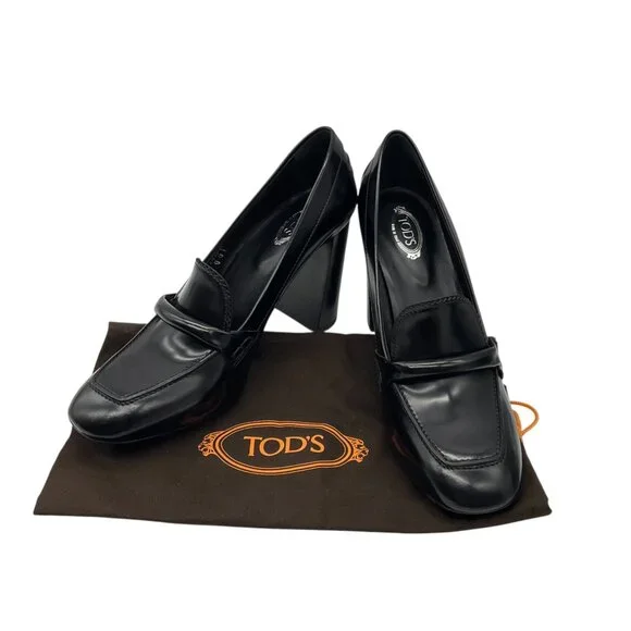 Tod´s Black Leather Heeled Loafer PumpsCondition: Very good condition*In very good condition. Please refer to photos.Material: LeatherIncludes: Dust bagCountry of origin: Italy*Please note, as with most shoes made in Italy, they may run small.Heel Height: 4"Sole: RubberHardware: N/AColor: BlackSize: US 12 / IT 42Category: ShoesSubcategory: HeelsItem Number: 28437-27 GF-725-DI** Photos are of the actual item **** Roundabout Couture Certified Authentic **