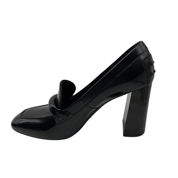 Tod´s Black Leather Heeled Loafer Pumps