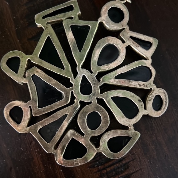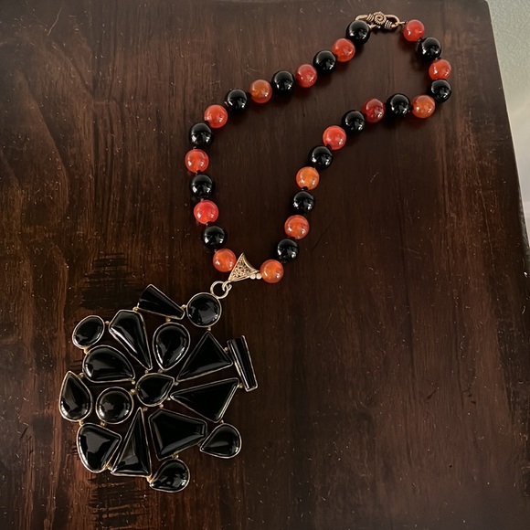 Vtg onyx and cornelian pendant necklace. Sterling silver. From 1970s