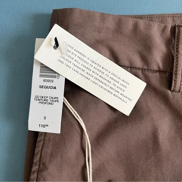 NWT Wilfred Free Aritzia Sequoia High Waist Deep Taupe Chino Pants