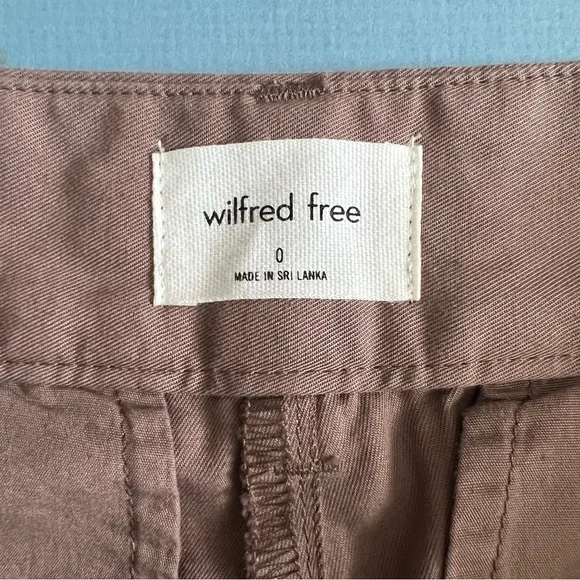 The Wilfred Free Sequoia Pants by Aritzia are a high-rise chino with wide legs! They´re made from 100% French cotton and the unique color of our garment dye is achieved through a special process — instead of dyeing the fabric, the finished garment is dyed for a dimensional, washed-down look and soft feel. Results vary from one piece to the next, so yours is truly one-of-a-kind!Details:* Deep taupe color way* High waisted* Zip fly with hook-and-bar closure* Darted at back waist for shaping* Wide leg* Inseam pockets* Back welt pockets* New with tags attached* Fabric contents: 100% cotton* Size 0Approximate Measurements:* Rise-10.5”* Waist-13”* Inseam-31”I styled the jeans with P448 Thea Python Roccia Platform Sneakers that are also available in my closet. If you are interested in purchasing both items please let me know. I would love to create a custom bundle for you!