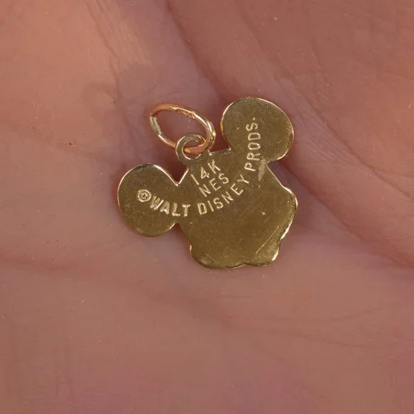 Vintage 14k Mickey Mouse Walt Disney Productions Charm .75" wide x .75" tall with original uncut jump ring. 1.6 grams.