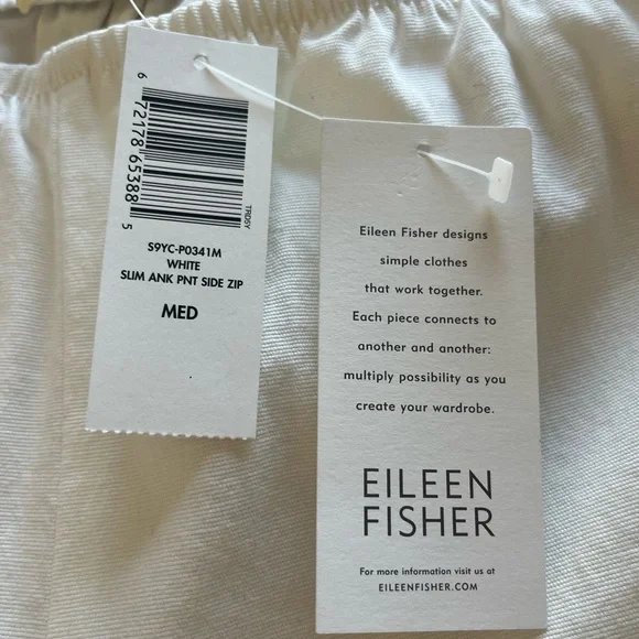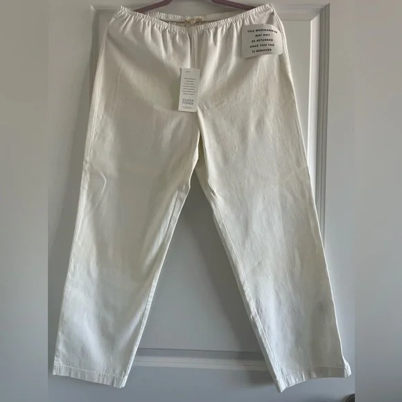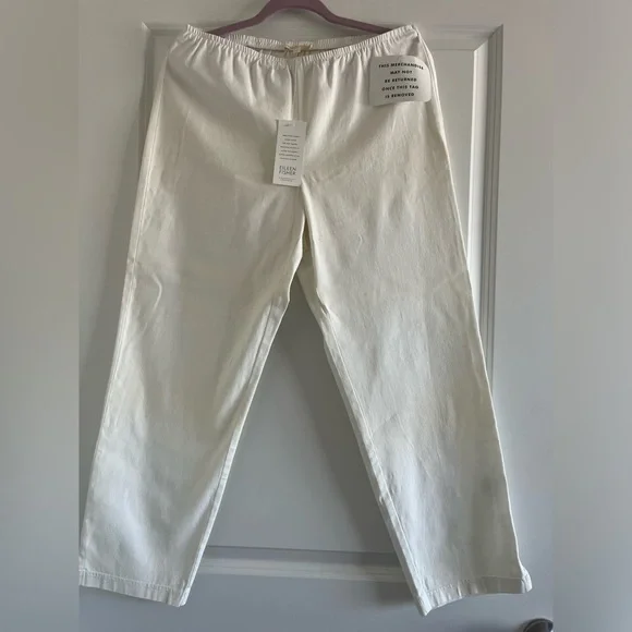 Eillen Fisher White Slim Ankle Cropped Pull On PantsElastic WaistWomen’s Size Medium Brand New With Tags