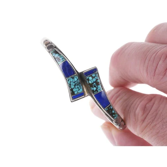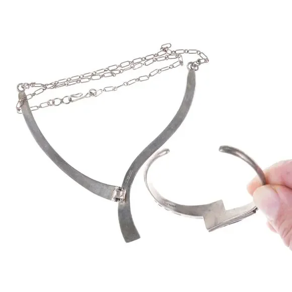 Vintage Native American Sterling High grade turquoise/lapis bracelet/necklace. 45 grams total weight, cuff fits up to a 6.5" wrist, 1" gap, necklace is 20" long.