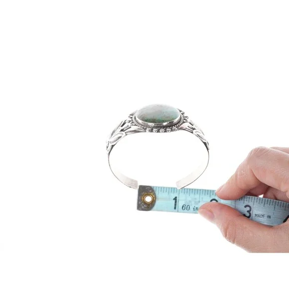 Large Vintage Bell Trading post Fred Harvey Era Turquoise Cuff bracelet.Established in the 1930s in Albuquerque, New Mexico, Bell Trading Post was primarily known for its manufactured southwestern style jewelry that was assembled and decorated by Native Americans. These souvenir jewelry pieces were sold to tourists at their store on Rt. 66 and other tourist shops across the Southwest. The company´s name changed to Sunbell Corporation in 1969, and it ceased operations in the late 1980s.All precious metals are tested and guaranteed, any Native American jewelry referred to as Silver or Sterling is guaranteed to be a minimum of 90% (coin) silver and possibly higher content. Anything marked is guaranteed to be what it´s marked, most bracelets are photographed on a 6" wrist (non hairy), rings photographed on the appropriate sized finger when possible. With bracelets if the measurement is not given in the description then inside circumference is shown where the metal meets the number on the the cloth tape measure.