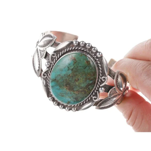 Large Vintage Bell Trading post Fred Harvey Era Turquoise Cuff bracelet