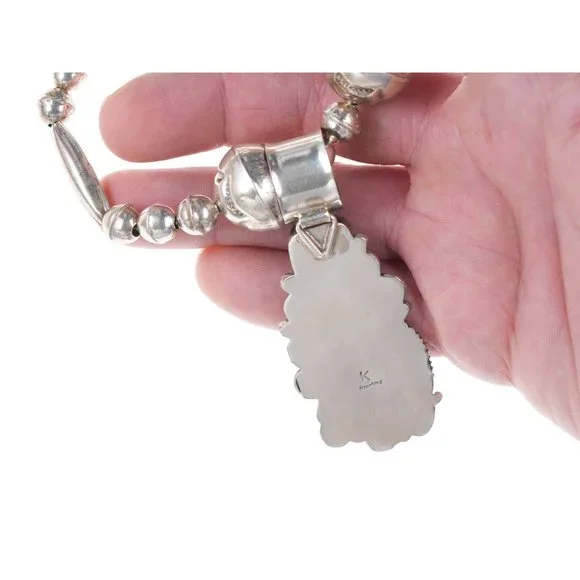 Navajo Sterling turquoise/coral pendant and beaded necklace. New old stock item never worn, 24" necklace, 3 1/8" with bail x 1.25" pendant 55.5 grams.