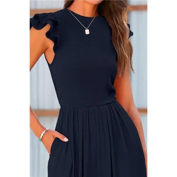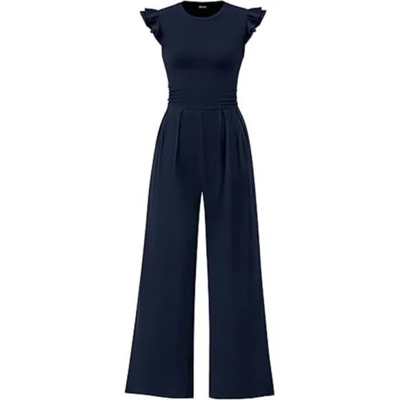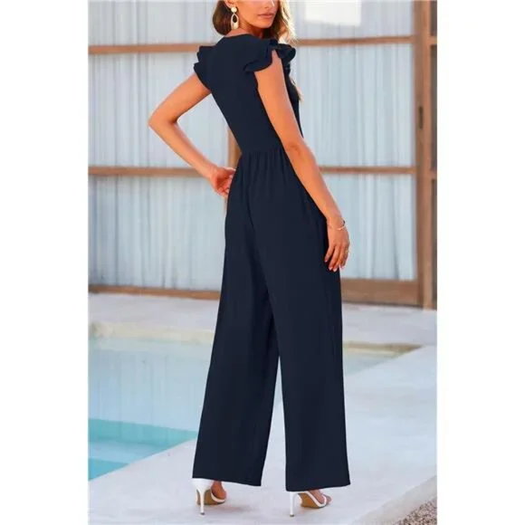 Summer Jumpsuits Ruffle Cap Sleeves Dark Blue