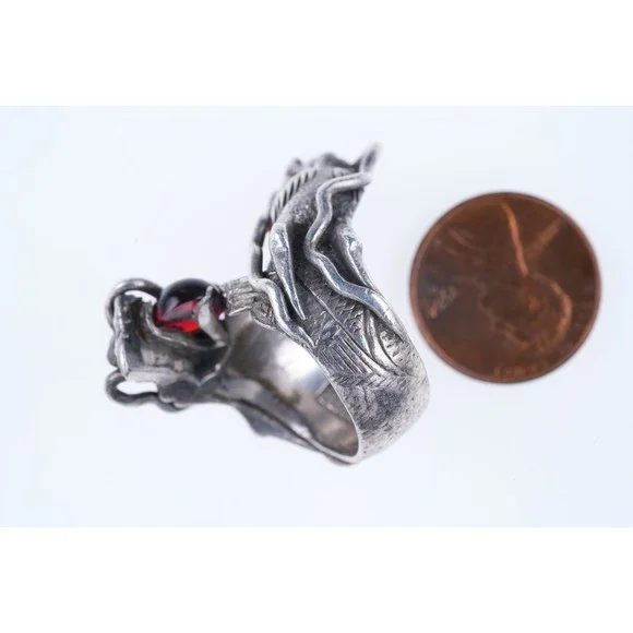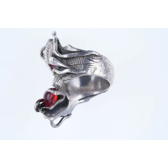 sz6.75 Antique Chinese Silver Dragon ring. Very nice ring marked and tested silver from the first quarter of the 20th century, red stones untested appear to be rubies. 20.4 grams, very substantial ring.