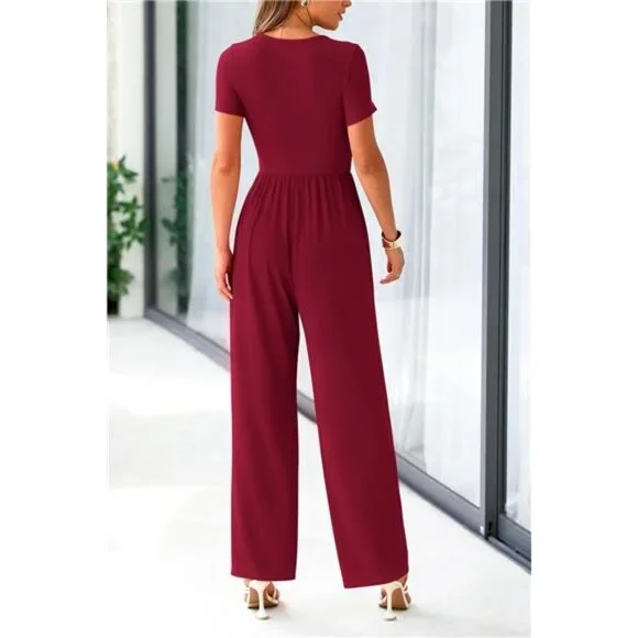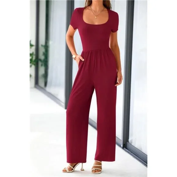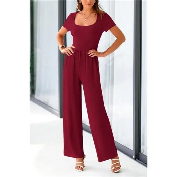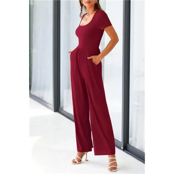 S=US 4-6,M=US 8-10,L=US 12-14,XL=US 16-18,XXL=US 20.Crafted From Soft and Stretchy Rib Knitted Fabric,This One Piece Jumpsuits for Women Ensures A Comfortable and Free Range of MotionThis Crew Neck Jumpsuits for Women Dressy Is Ideal for Summer and Spring.The High Waist,Concealed Back Zipper Jumpsuit,Ruffle Cap Sleeves Rompers and Wide Leg Pants Outfits Make It Both Stylish and Comfortable,Suitable for Any Outfits OccasionWomens One Piece Jumpsuit/Jumpsuits for Women Dressy/Crew Neck Rompers for Women/Ruffled Cap Sleeve Jumpsuits for Women/Summer Outfits for Women/Slim Fit Jumpsuits for Women/Pleated Waist Jumpsuit for Women/Concealed Back Zipper Rompers for Women