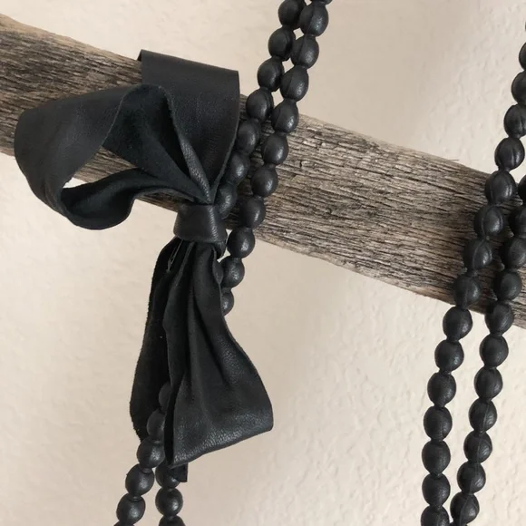 Natalia Brilli “Le Sautoir” Black Leather Covered Pearl Necklace $449