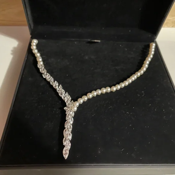 Gorgeous fresh water pearls with created white sapphires and sterling silver dangle necklace.Simply Vera Vera Wang new in the box.Retail $700.