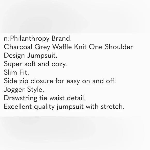 Elevate your style with this chic 1 sleeve with pockets jumpsuit in charcoal gray. Perfect for a lot of fun occasions, maybe after sledding, skiing or snowboarding?It combines comfort and fun stylingeffortlessly. Slim fitting. Adjustable waistNWT Ret $168BR2 20