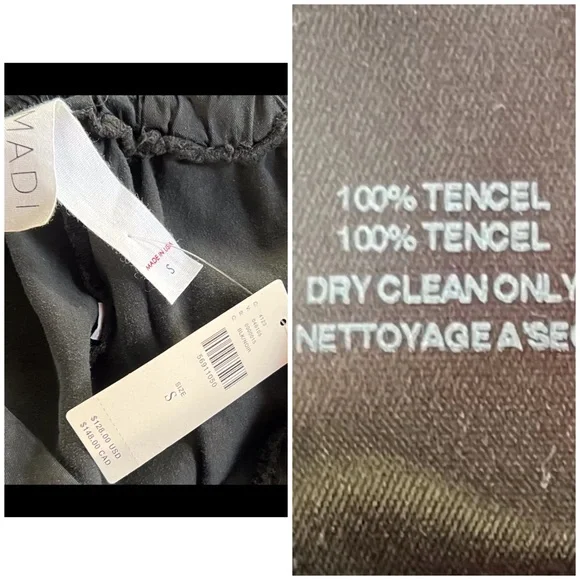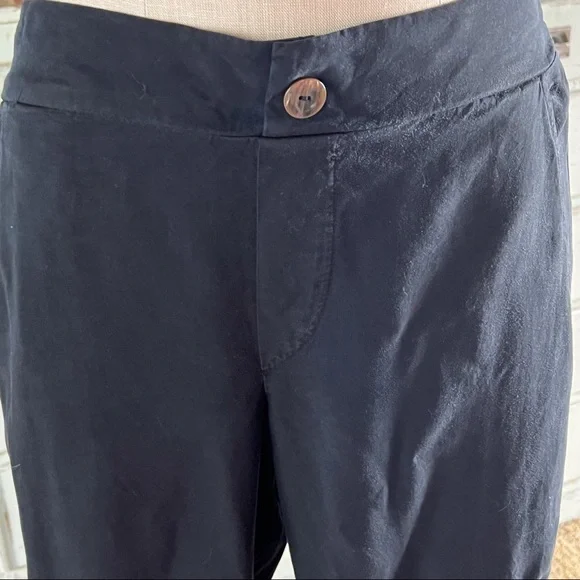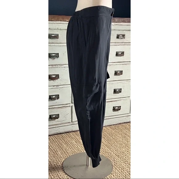 New With TagsSize SmallThese black 100% tencel pants by Amadi have a dressy cargo style.The pants have a loose leg and a tapered jogger ankle.They have a tortoiseshell button &...