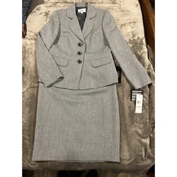le suit skirt suit Size 10 Gray Business Formal NWT Msrp $200