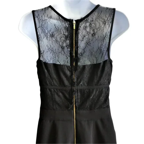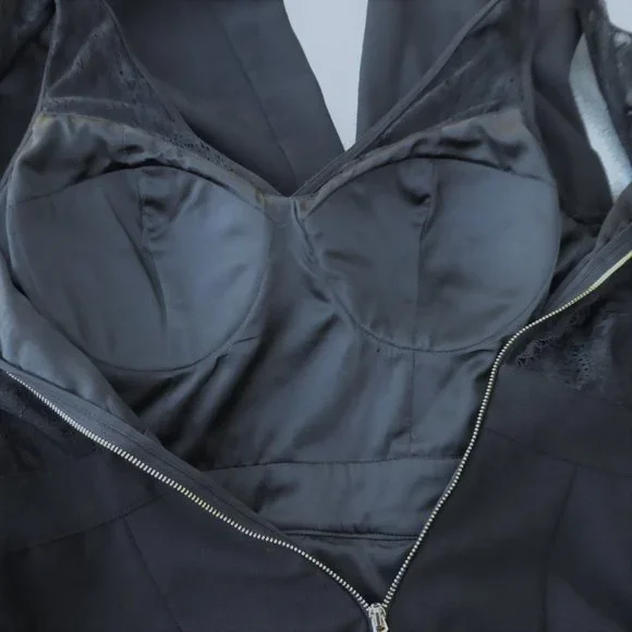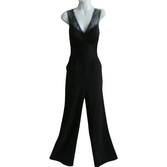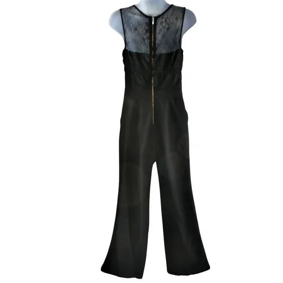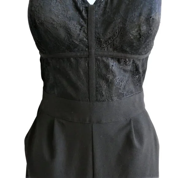 Bebe Black Jumpsuit Lace Overlay Corset Padded Bra Pockets Wide Leg Back Zip S