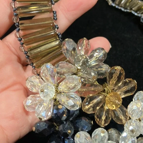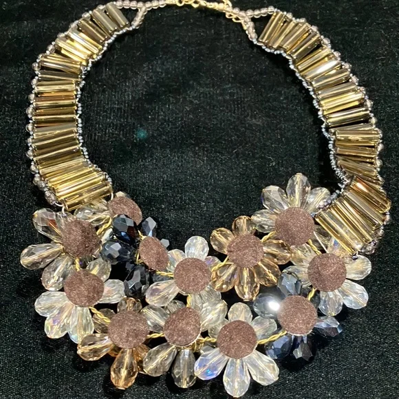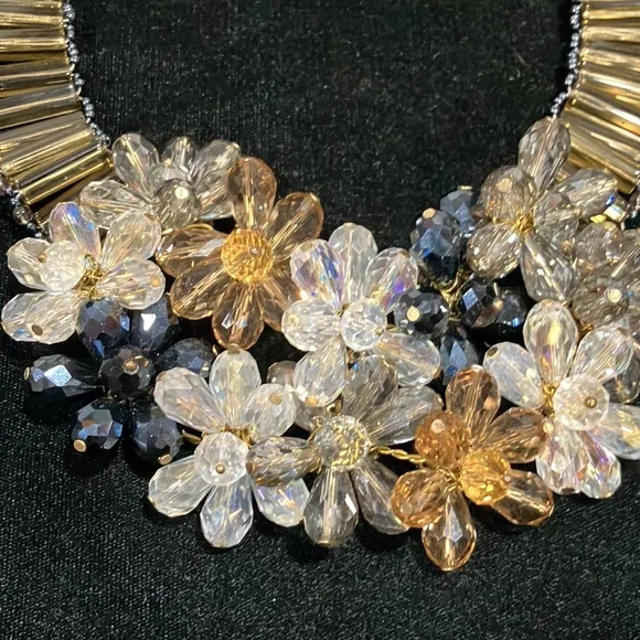 Blue and Champagne Beaded Statement Necklace-G9