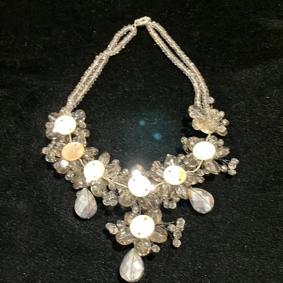 Long Sliver Beaded Statement Necklace G19
