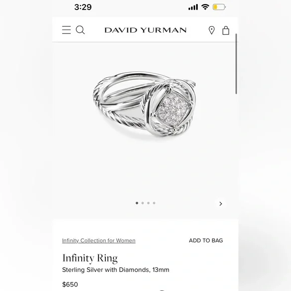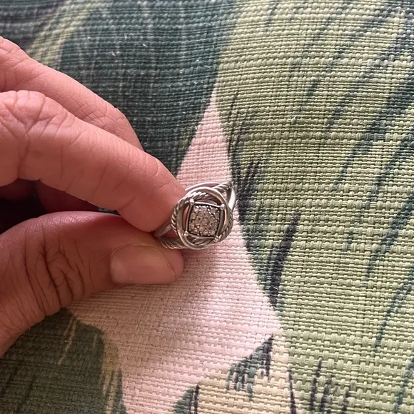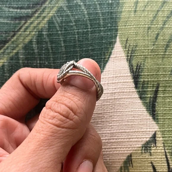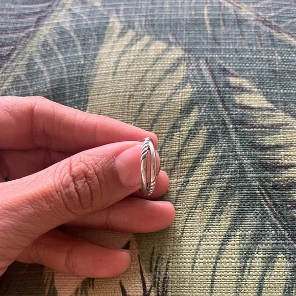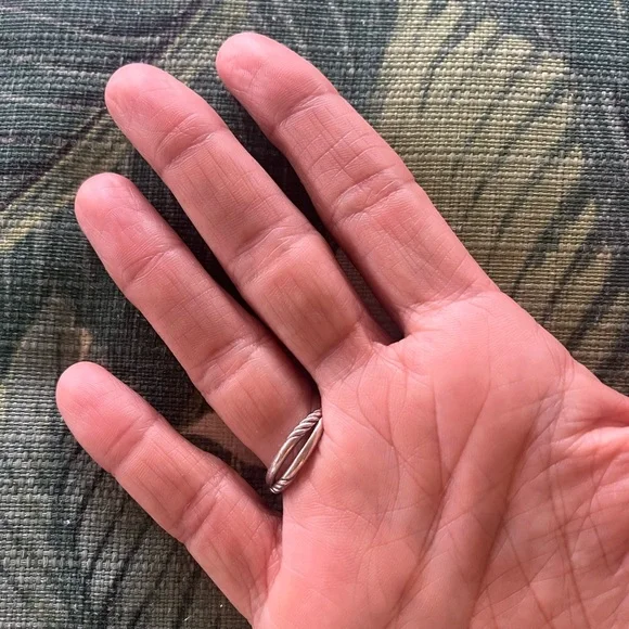 David Yurman Infinity ring, size 6 in sterling silver. Gently used with a little wear on one side, photos included. Beautiful ring and David Yurman suede pouch included