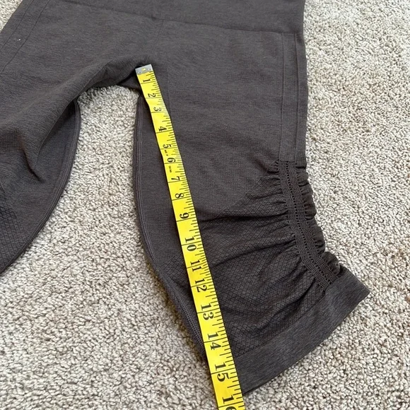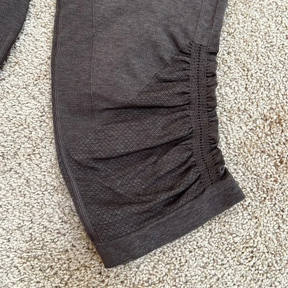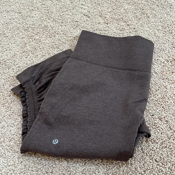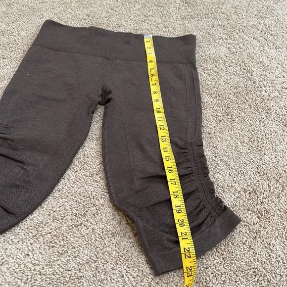 Lululemon Athletica brown ruched sports tights . . (For reference: Bar size 0=2 1=4 2=6 3=8 4=10 5=12). Great condition. The size tag has been ripped off.