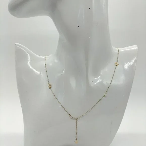 Samantha Tiara Necklace Pearl Yellow Gold 428171I am such a sucker for the moon and star necklaces.I used to tell my daughter I loved her to the moon, sun, stars and back; so when I see these it reminds me of how much I love her.Please see pictures for more details.Main Color : GoldSub Color : WhitesChain Size : 60 cm / 23.6 inchTotal Main Stone(s) : PearlSize : Pearl size about 0.25cmMaterial : Yellow GoldPurity : 10kGross Weight : 1 g / 0.035 oz