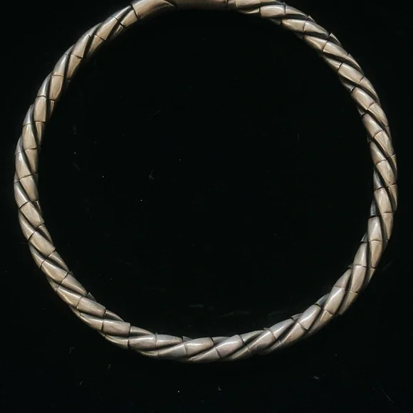 Sterling silver (marked 925 on clasp) thick twisted rope collar choker necklace. Bought in a boutique jeweler shop in Milan. Stunning.