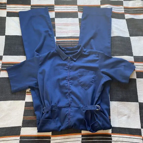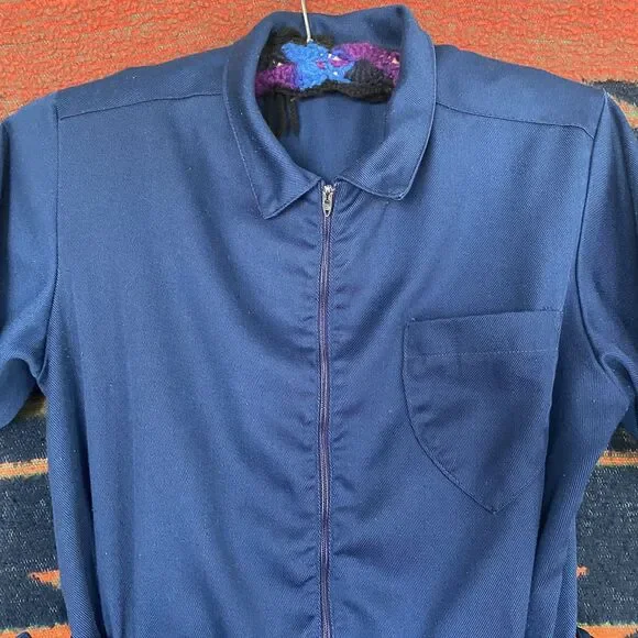 Vintage Women’s Utility Jumpsuit. Pockets. Talon Zip Up. USA. Blue. Collar.
