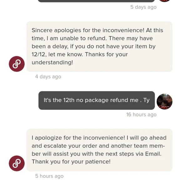 keeps putting me off on a ring I didn´t receive. saying the package was left on the porch..I have purchased many rings from them and never have they been placed on the porch and not in my mail box which is locked with a key that only myself and mail lady has. I was told by Manger Nikki I would receive my full refund on the 12th. yet they keep saying the same thing and given me the run around. I don´t won´t this to happen to others.