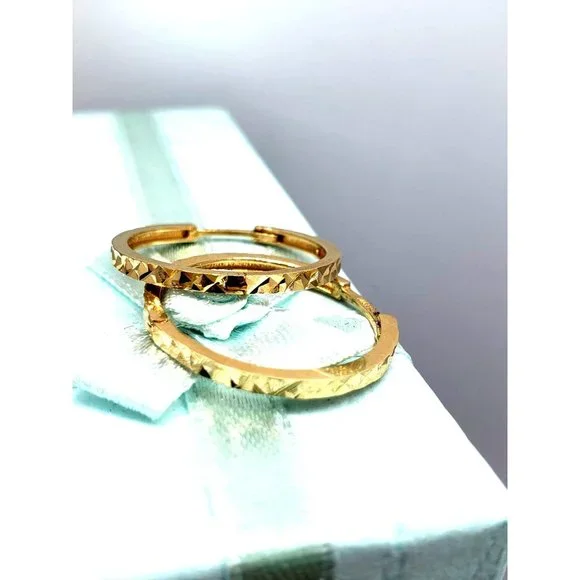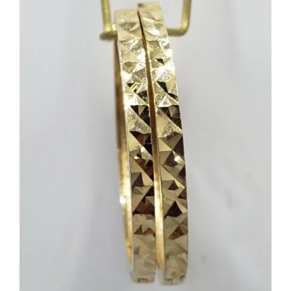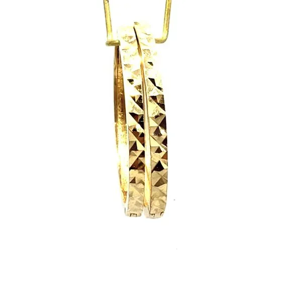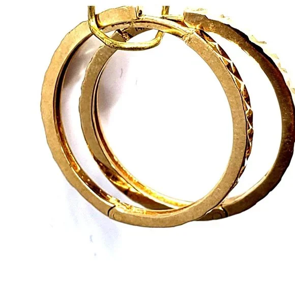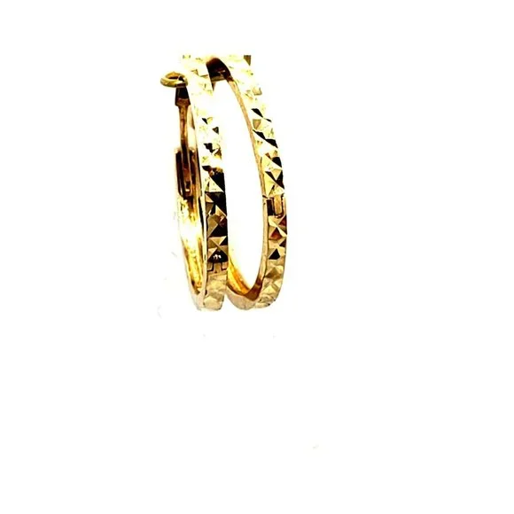 14K Gold Hoop Earrings Faceted Small Diamond Cut Women´s Earrings