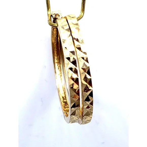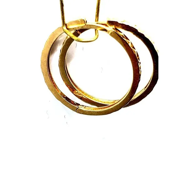 Beautiful pair of yellow gold endless hoop earrings with a diamond cut finish.Gold color :yellow goldDiameter: 21.20 mmpurity gold : 14 karatMade in: Italyplease check the...