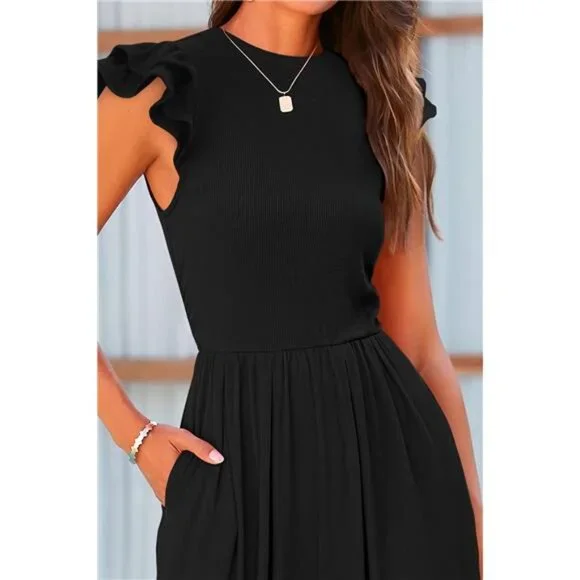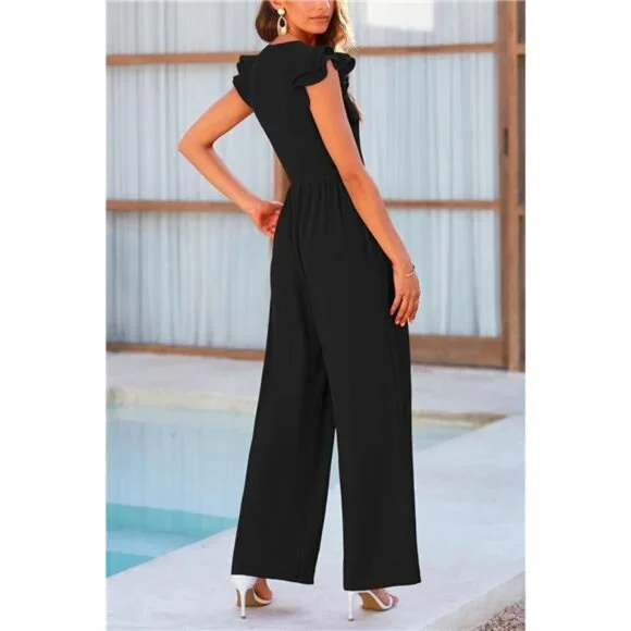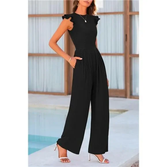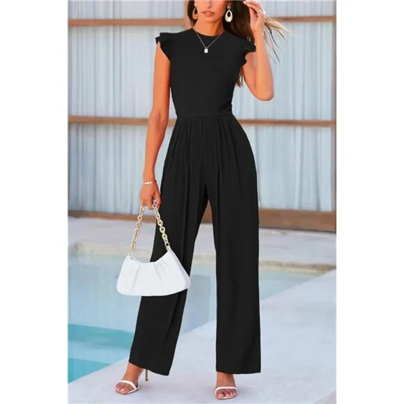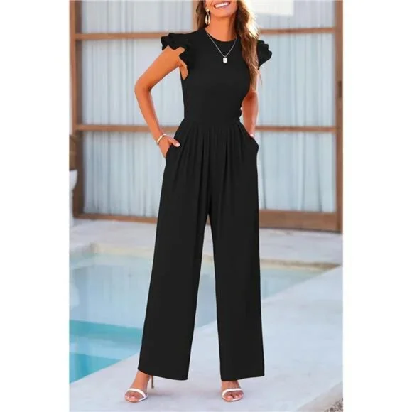 S=US 4-6,M=US 8-10,L=US 12-14,XL=US 16-18,XXL=US 20.Crafted From Soft and Stretchy Rib Knitted Fabric,This One Piece Jumpsuits for Women Ensures A Comfortable and Free Range of MotionThis Crew Neck Jumpsuits for Women Dressy Is Ideal for Summer and Spring.The High Waist,Concealed Back Zipper Jumpsuit,Ruffle Cap Sleeves Rompers and Wide Leg Pants Outfits Make It Both Stylish and Comfortable,Suitable for Any Outfits OccasionWomens One Piece Jumpsuit/Jumpsuits for Women Dressy/Crew Neck Rompers for Women/Ruffled Cap Sleeve Jumpsuits for Women/Summer Outfits for Women/Slim Fit Jumpsuits for Women/Pleated Waist Jumpsuit for Women/Concealed Back Zipper Rompers for Women