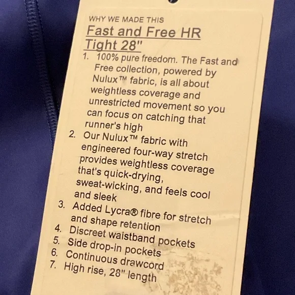 New with tags Lululemon fast and free hr tight 28" leggings size 2