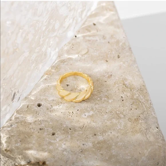 14k Gold Croissant Dome Braided Ring