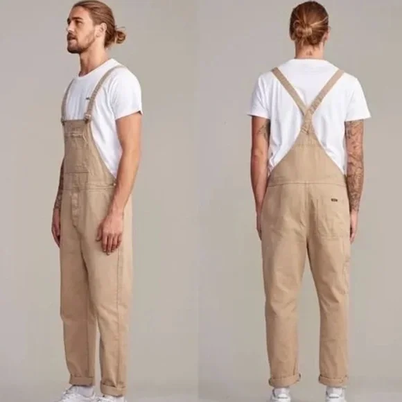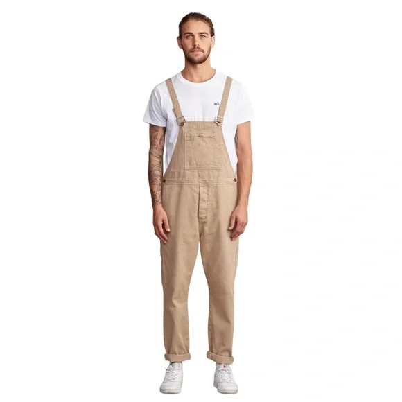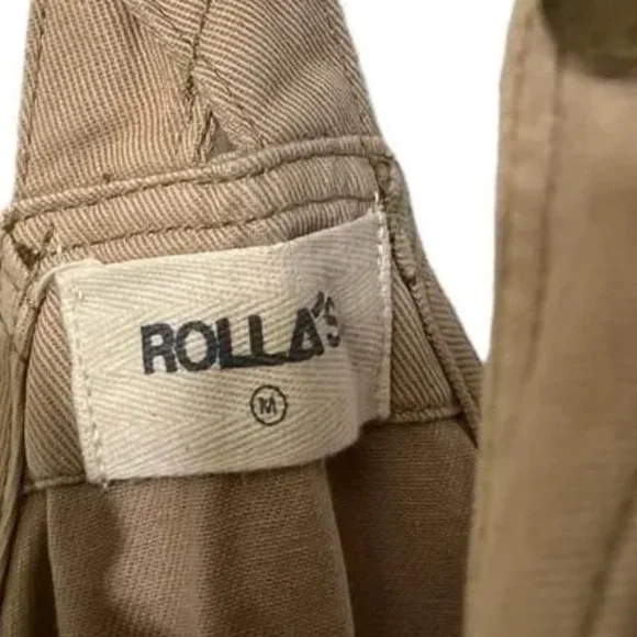 Rolla’s tan trade overallsUnisex With multiple pocketsRelaxed fit Small smudge on the right front leg towards the bottom, hardly noticeable. No holes or other damagesSz MediumArmpit to armpit Waist across 18”Inseam 24”