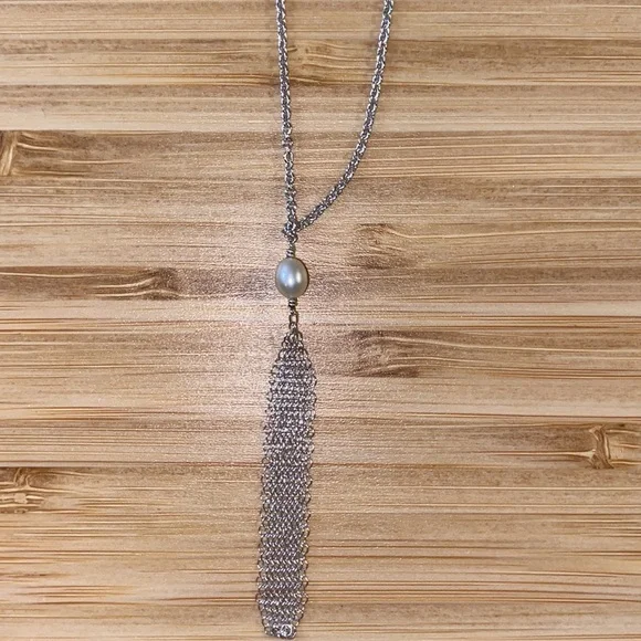 Tiffany Elsa Peretti mesh tassel pearl pendant necklace