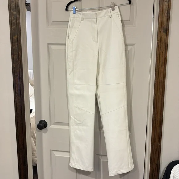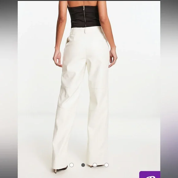 NA-KD X Sofia Coelho faux leather straight leg pants in off white