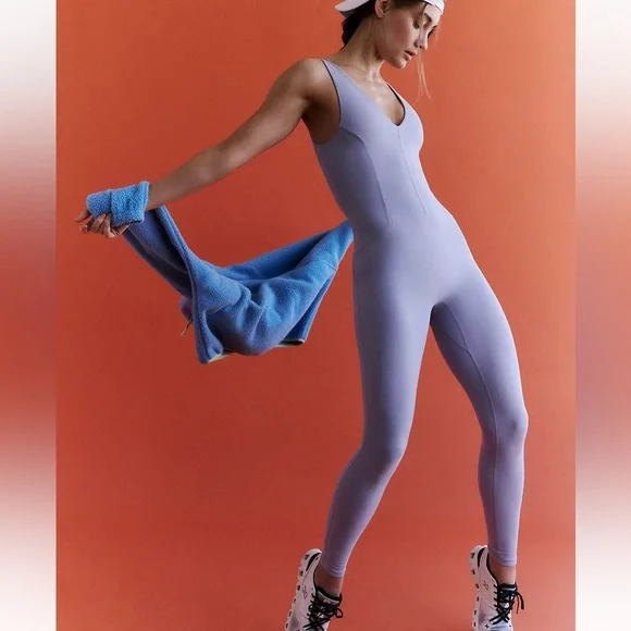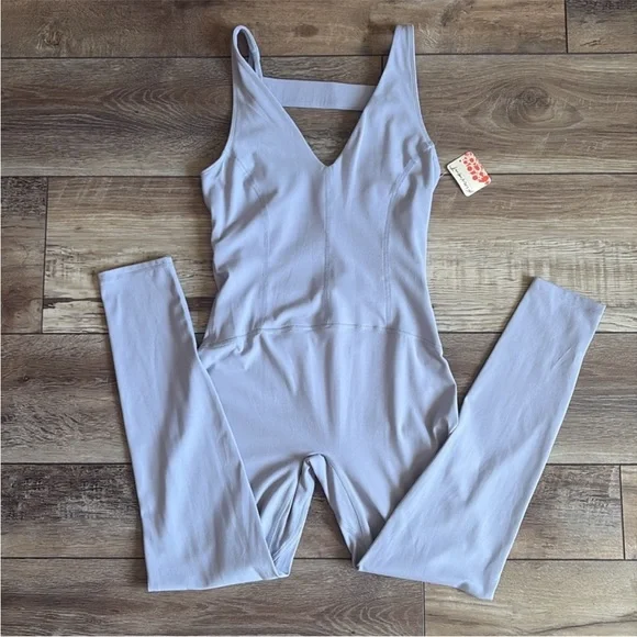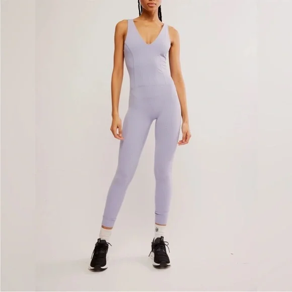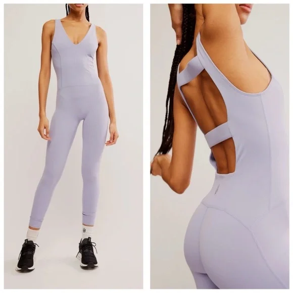 Brand New With Tags!Size: XS SMALLColor: PlatinumElevate your style with this chic Purple sleeveless jumpsuit. Perfect for any occasion, it offers both comfort and elegance.Designed for Medium-Impact Workouts Essential activewear that offers support and comfort through light-to-medium intensity workouts and training.Breathable Lightweight and comfortable to allow airflow while keeping you cool.Four-Way Stretch Stretches lengthwise and widthwise with quick recovery to form to your every move.A new addition to our favorite ultra-soft collection, this sleek one-piece is featured in a smooth fabrication and classic pull-on style with bold cutouts at the back and deep V-neckline.Fit: Formfitting silhouette, ankle-lengthFeatures: Smooth fabrication with an ultra-soft feel, four-way stretch, sleeveless-style, plunging neckline, cutout back detailWhy We ❤ It: This versatile one-piece can be worn to all your favorite studio workouts and to go to and from.Size + FitMeasurements for size Small ( taken from official FP website )Inseam: 26 inWaist: 26 inBust: 29 inHips: 30.5 inRise: 7 inContentsCareMachine Wash ColdContents79% Polyamide, 21% ElastaneOrigin