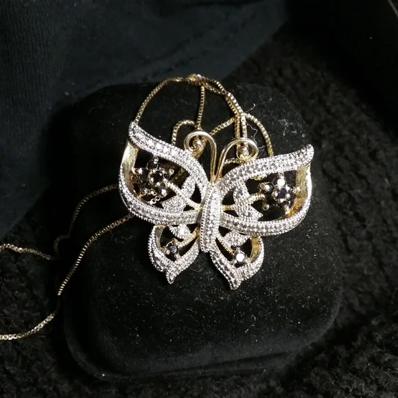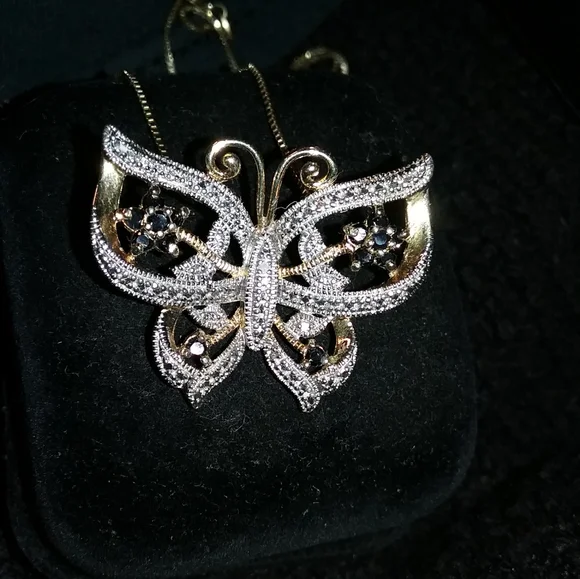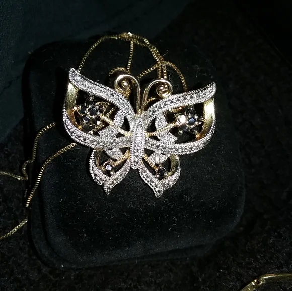 Beautiful Butterfly Diamonds & Sapphires, Gold Box Chain & .925 Stamped. Necklace Beautiful AbsolutelyBeautiful