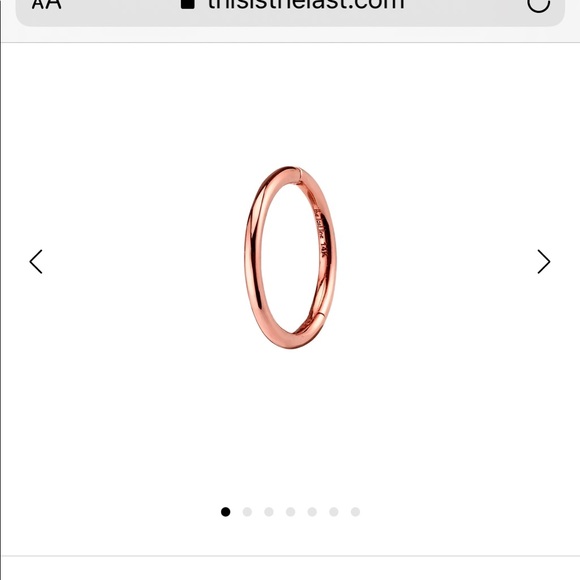 Brand new, never worn! By The Last Line. I’m just not edgy enough to pull this off (and I prefer silver jewelry, tbh). This includes TWO 14k rose gold earrings: the medium seamless huggie hoop and large safety pin earring. I screenshot what I could but you can find all the info on their site. It’s punk but feminine—for the rebel who’s all grown up.Reasonable offers only! I paid over $420 for this with tax!