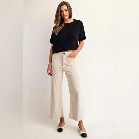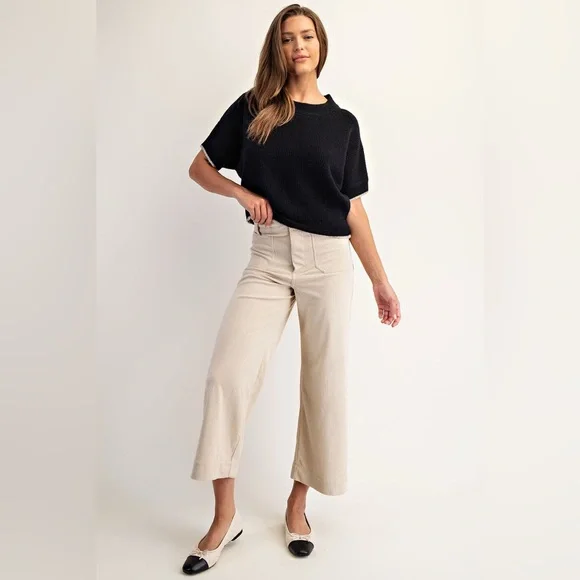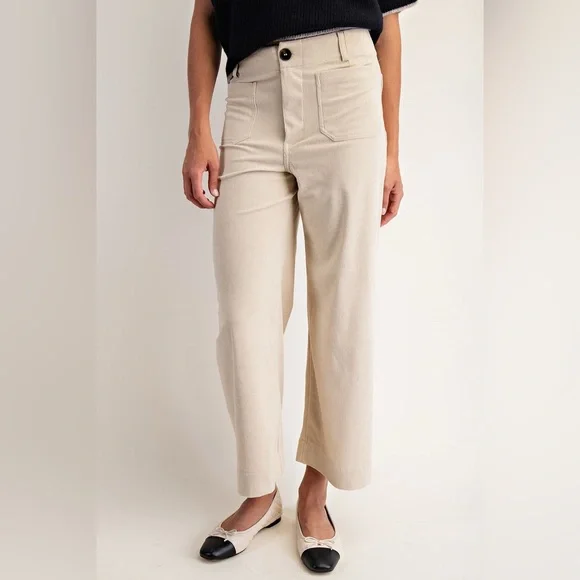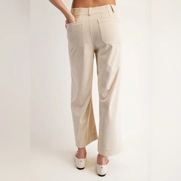 Slouchy Straight Leg Corduroy Pants with Patch Pockets - eesomeKick back in comfort and style with these laid-back corduroy pants. Designed in a softer, lightweight corduroy that drapes just right, they bring a vintage feel without the stiffness.Lightweight, slouchy non-stretch corduroyStraight leg silhouetteOversized front + back patch pocketsButton closure with zip fly and belt loopsVintage-inspiredMaterial: 100% PolyesterApproximate Measurements: (inches, garment laying flat)Small: 13.5" Waist, 19" Hip, 25.5" InseamMedium: 14.5" Waist, 20" Hip, 26" InseamLarge: 15.5" Waist, 21" Hip, 26.5" InseamRise: 11"