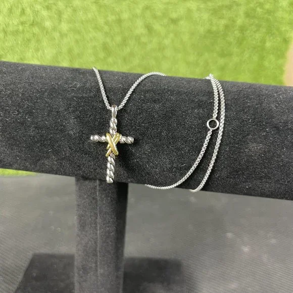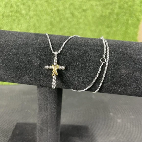 Cross Crossover Pendant Necklace in Sterling Silver with18kgold