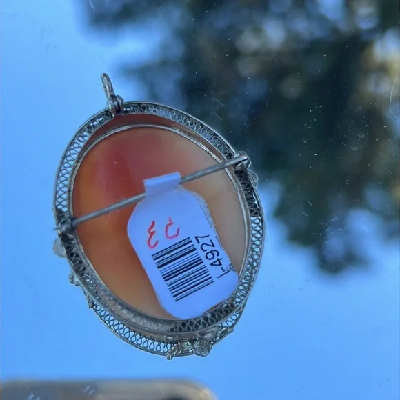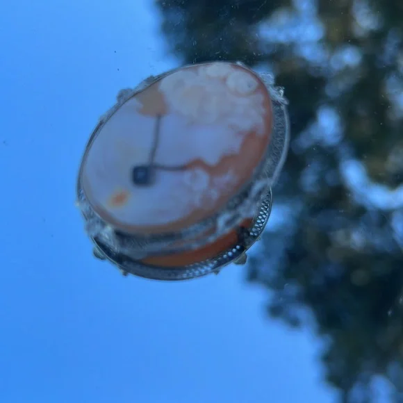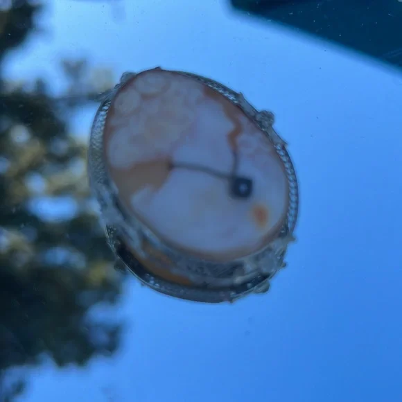 14kt white gold bezel cameo with Diamond can be worn as pin or pendant