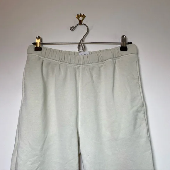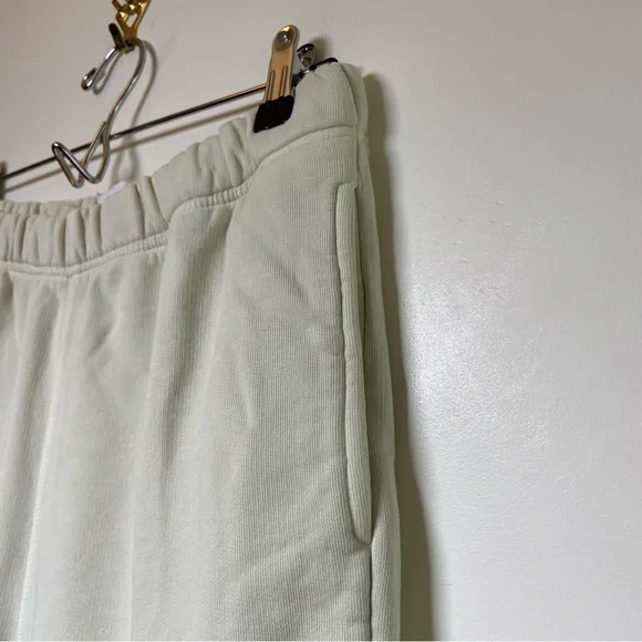 MATE Classic Jogger Sweat PantsSMinty green100% Organic cottonMade in IndiaElastic waist with adjustable string on the inner waist band.Approximate measurements:Waist:15"Rise:12"Inseam: 27.5"EUC
