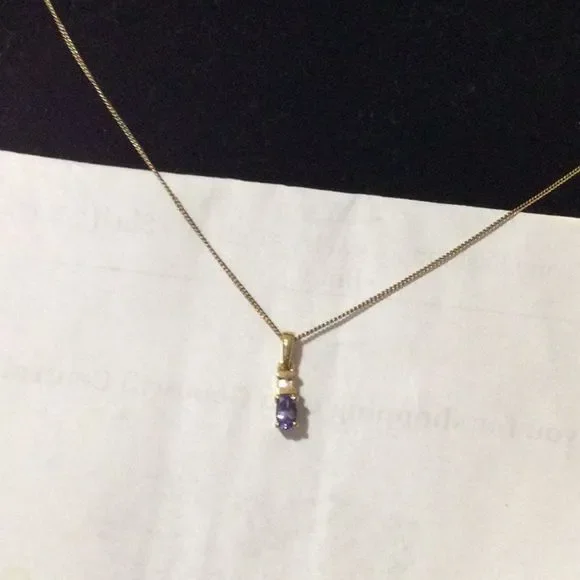 New with tags Tanzanite and Diamond Gold over 925 necklace 21 inches long