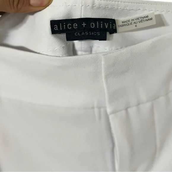ALICE + OLIVIA white pleated trousersHigh waistedPleatedIn great pre loved condition. No stains, holes or damagesSz 4Waist across 15”Rise 10”Inseam 27”