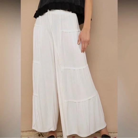 POL Ivory White Ribbed Contrast Knit Flowy Pants Relaxed Fit | Multiple Colors AvailableElevate your style game with our Ribbed Contrast Flowy Pants. These wide leg pants are designed with a ribbed fabrication for added texture and finished with an adjustable elastic waistband for the perfect fit. Made for comfort and style, these pants will become your go-to for a chic and effortless look.- Elastic waist- Rib knit Color | Ivory White Available in a variety of colors Sand Beige Mauve Pink Dusty Blue Ivory / WhiteMilk Chocolate ( Mocha ) Gray Black As usual measurements are taken laying flatWaist—17”Fabric Composition | 94% Rayon| 6% SpandexElevate your loungewear collection with these versatile pants today!✨Our Little Love StorySecure yours now!Handpicked for a curated boutique experience—limited availability!Ships quickly and securely from a trusted boutique. No surprises—just quality, care, and a seamless shopping experience.