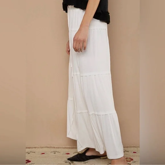 POL Ivory White Ribbed Knit Contrast Flowy Pants Relaxed Fit