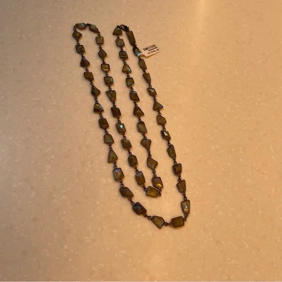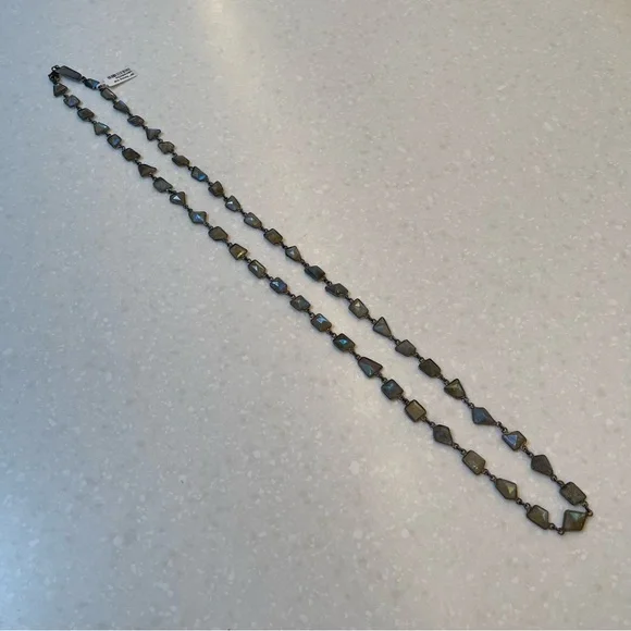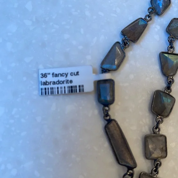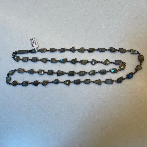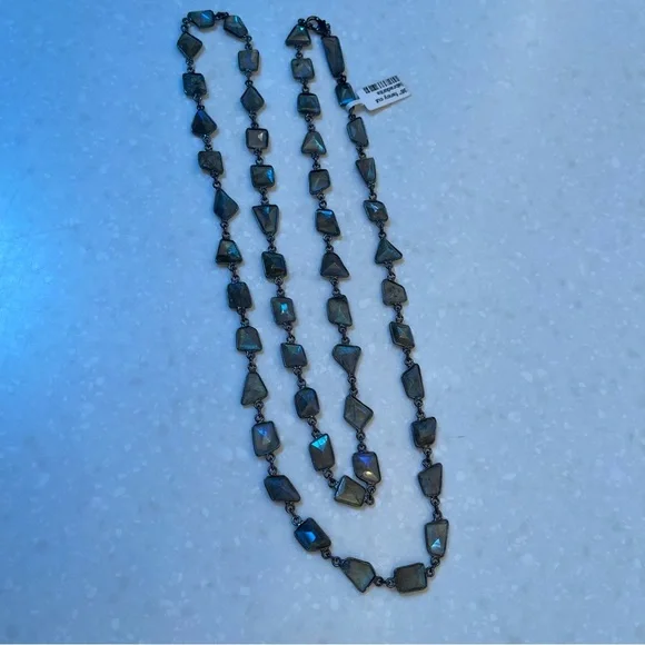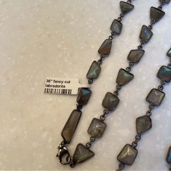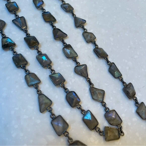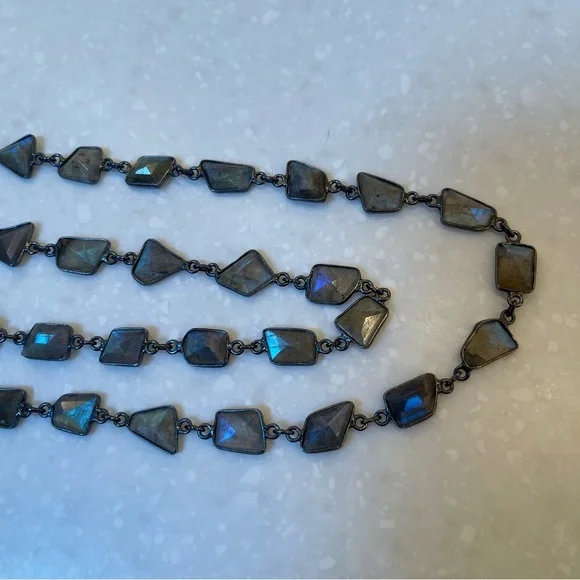 One of a kind faceted Labradorite necklace, (50) faceted beads, wrapped in 925 sterling silver, blacrhodiumed, lobster clasp 925 sterling silver black rhodiumed, 36” in length, New with tags