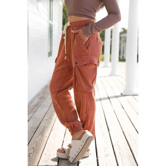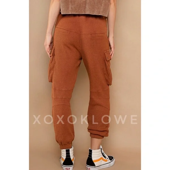 POL Waffle Knit Slouchy Cargo Joggers in BrickBRAND NEW - Also Available in Cream Ultra-comfy and so made for lounging, these slouchy pants are featured in a soft medium weight...