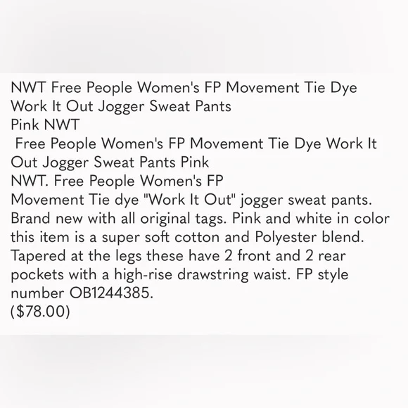 NWT Free People FP Movement Tie Dye Work it Out Jogger Sweats